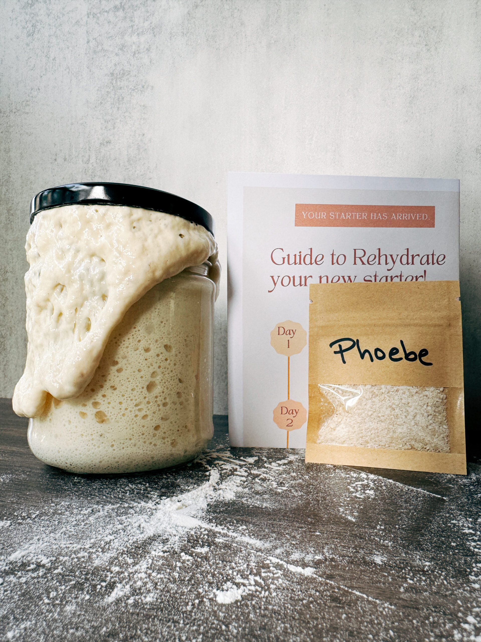 “Phoebe” a 170 yr old Sourdough Starter from San Francisco. A dehydrated starter packet to activate and use in baking amazing sourdough bread. Very robust, bubbly and active starter.